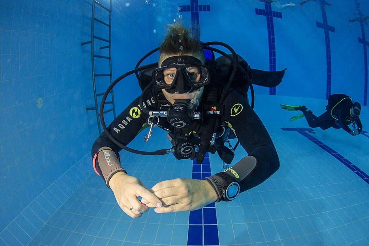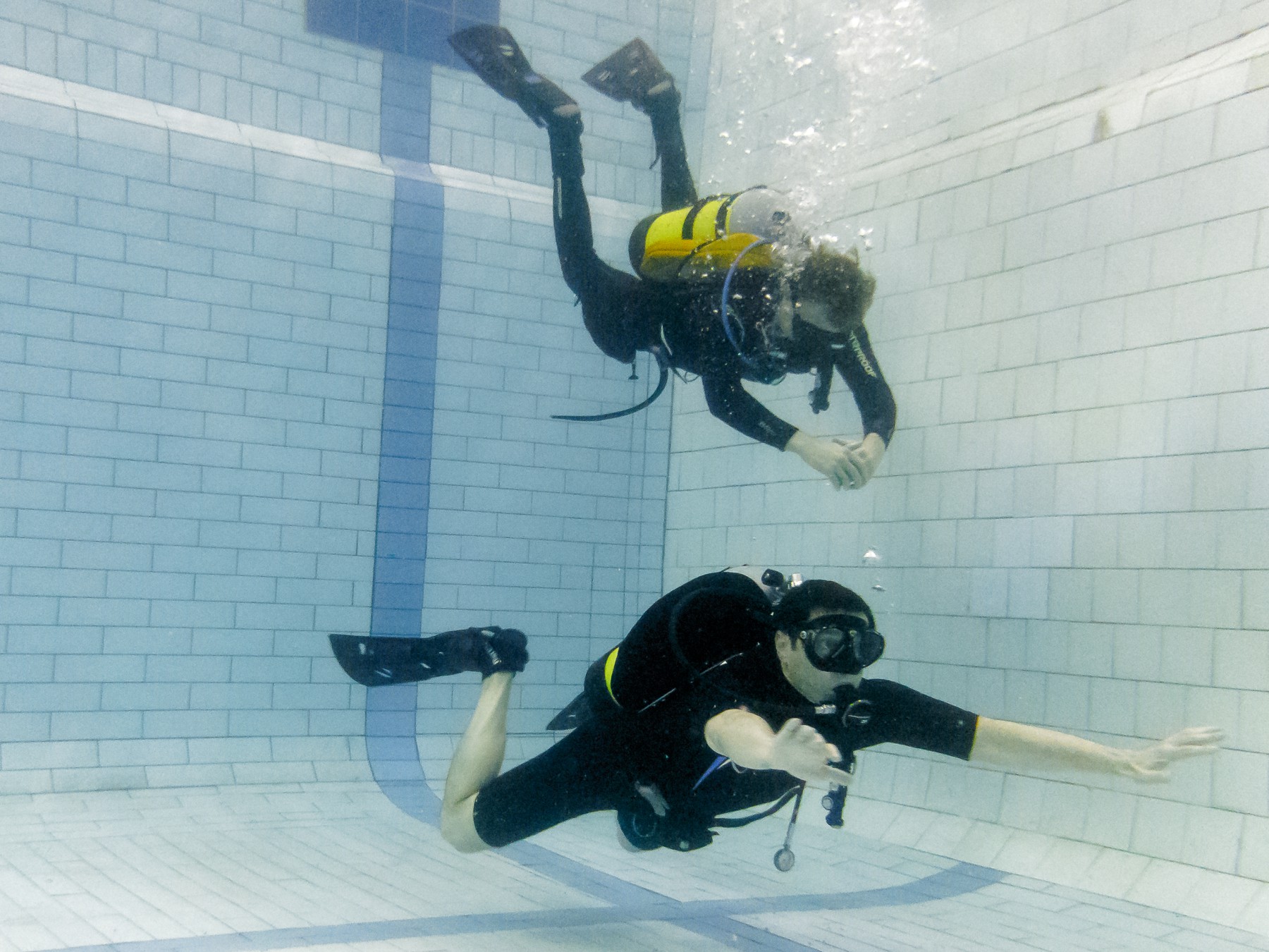 отрабатываются приёмы и схемы поведения под водой. Для профессионалов погружения в бассейне